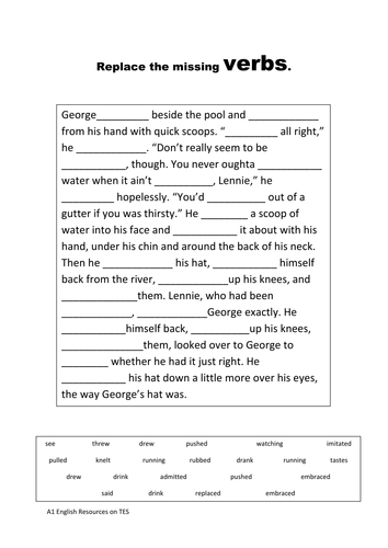 Of Mice And Men Chapter One Verbs And Nouns Practice Teaching Resources